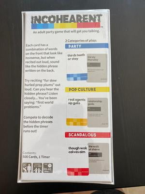 Be aware that IncoHEARent is a game intended for ages 17. - Choose from a variety of themed decks. Rope herd mule lore.